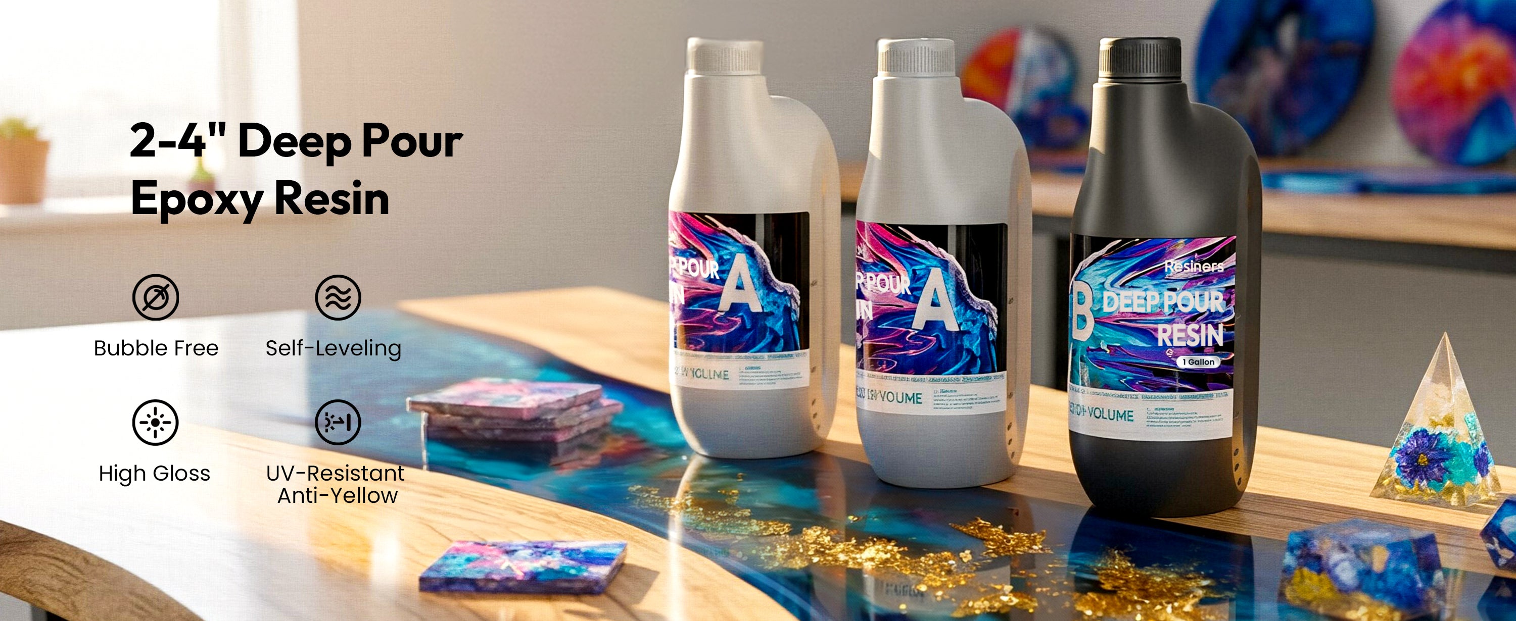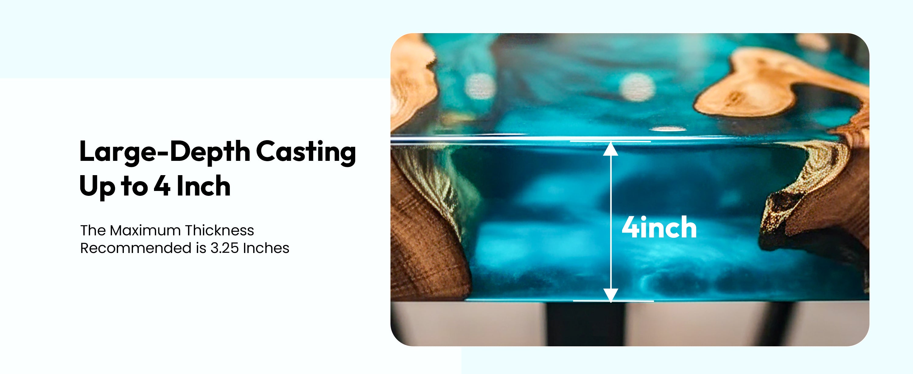 - Deep Pour Up to 4 Inches - Create stunning river tables and large castings with ease. The Resiners Deep Pour Epoxy Resin Kit includes 2 Gallon Part A + 1 Gallon Part B and allows a true 2–4 inch pour without layering. Reduce time, eliminate complexity, and achieve clearer, stronger results in a single pour.