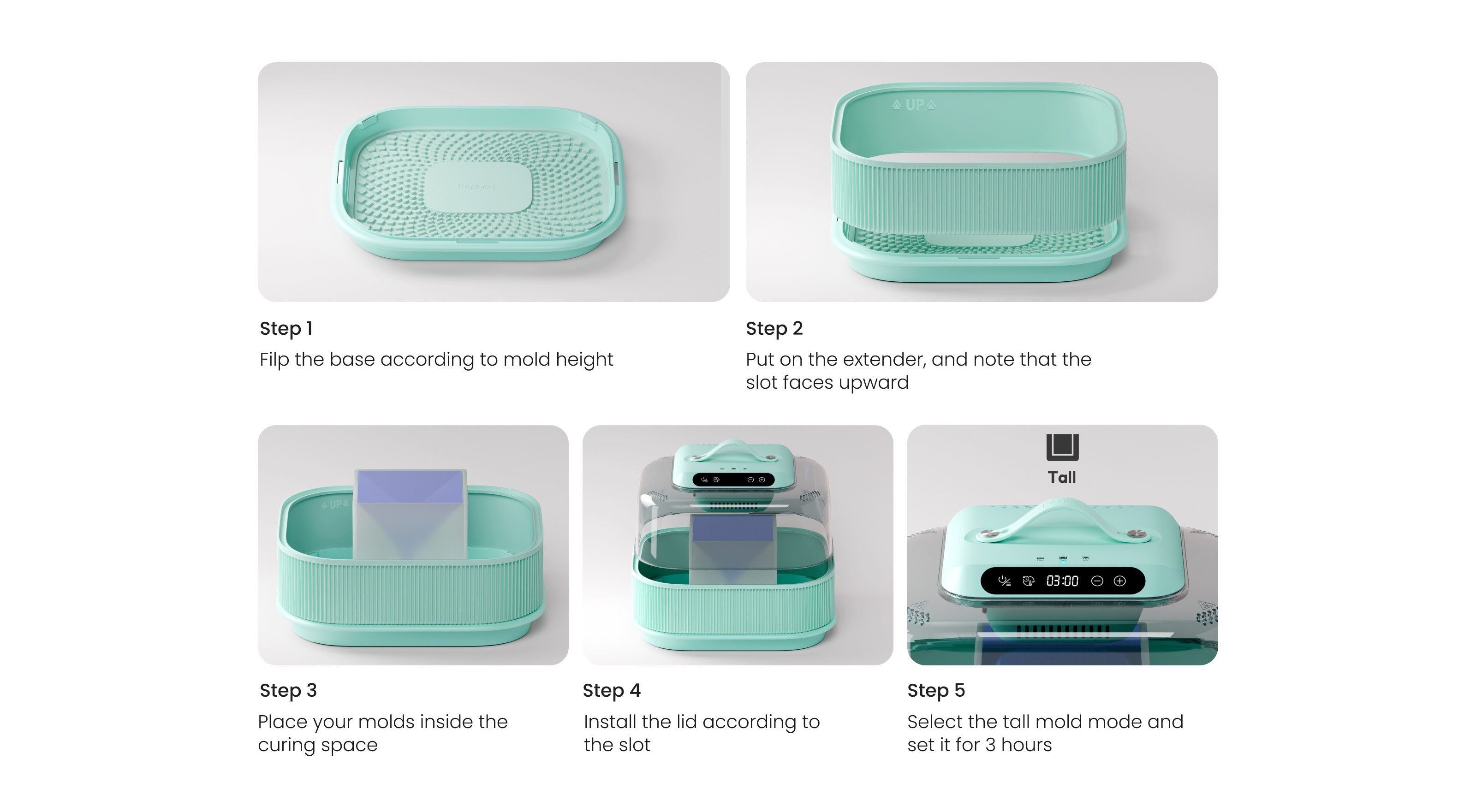 - Thoughtful Setting Suggestions: When you use this extender, it's suggested to set the G3 resin curing machine to the tall mold mode and add 1 hour on the basis of the default 2 hours. This will ensure the final curing effect is perfect, making your work reach the ideal state